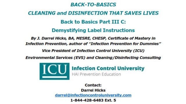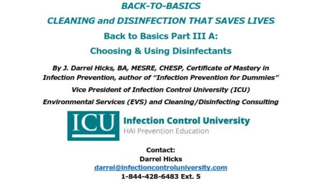 Back to Basics Part III B (Video One): Grasping Disinfectant Use