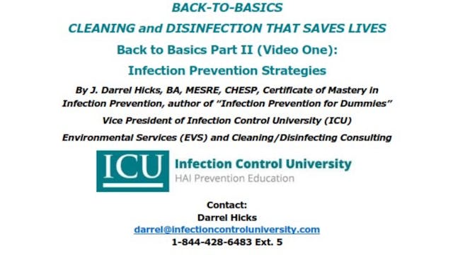 Back to Basics Part II A (Video One): Infection Prevention Strategies